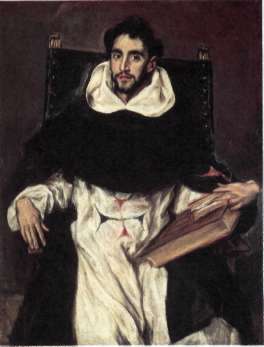 237 Холст, масло 157,5 X 100,3 см венецианской школы - теплого колорита, насыщенного цветами плодоносящей природы. Блеклое освещение и резкие перепады цветовой гаммы усиливают драматическую напряженность в его картине Борьба Святого Георгия с драконом (илл. 237). Ощущение кульминации события достигается особым построением: вопреки всем правилам схватка рыцаря с чудовищем происходит вдали, а принцесса бежит нам навстречу, устремляясь за пределы картины. Среди художников XVI века дальше всех пошел в этом направлении Доменико Теотокопули (1541?- 1614), получивший известность под коротким прозвищем Эль Греко (грек). Он прибыл в Венецию с греческого острова Крит, из той отдаленной части Европы, где искусство еще не рассталось со средневековой традицией. На родине его окружали византийские иконы и настенные росписи, торжественно-застылые и далекие от сходства с натурой. Он не прошел итальянской школы рисунка и потому не усмотрел в живописи Тинторетто никаких изъянов, напротив - она восхитила его. Судя по всему, он отличался страстной набожностью и испытывал настоятельную потребность передать ее в волнующей форме. После недолгого пребывания в Венеции он перебрался в испанский город Толедо. В Испании, окраине европейского мира, также были еще живы средневековые традиции, и это обстоятельство уберегло его от критических нападок с требованиями неукоснительного соблюдения натуроподобной формы. В отсутствие