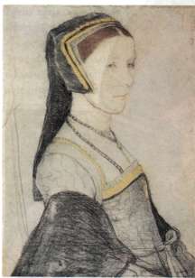 241 Бумага, уголь, цветной мел 37,9 х 26,9 см Швейцарию и отправился в Англию, имея на руках рекомендательное письмо от выдающегося гуманиста Эразма Роттердамского. Представляя художника своим друзьям, в том числе и Томасу Мору, Эразм сообщал: «Искусства здесь замирают». Хольбейн начал работать над большим портретом семьи Томаса Мора, этюды к которому ныне хранятся в Виндзорском замке (илл. 241). Его надежды укрыться от потрясений Реформации были развеяны последующими событиями, но все же он смог обосноваться в Англии. Вместе с титулом придворного художника короля Генриха VIII он получил гарантию применения своих творческих сил и надежное материальное обеспечение. Мадонн он писать уже не мог, но круг предписанной ему деятельности был достаточно широк. В качестве придворного художника Хольбейн занимался оформлением дворцовых залов, делал эскизы маскарадных костюмов, мебели и ювелирных украшений, оружия и кубков. Главной его обязанностью было писать портреты членов королевской семьи и царедворцев. Безошибочному глазу Хольбейна мы обязаны ныне тем, что имеем такое живое представление о людях времен Генриха VIII. На илл. 242 представлен портрет сэра Ричарда Саутвелла, придворного и сановника, принимавшего участие в закрытии монастырей. В портретах Хольбейна нет внешнего драматизма или возбуждающих любопытство искусственных приманок, однако чем дольше мы смотрим на них, тем больше раскрывается личность позирующего. Не возникает ни малейшего сомнения в том, что художник без гнева и пристрастия зафиксировал