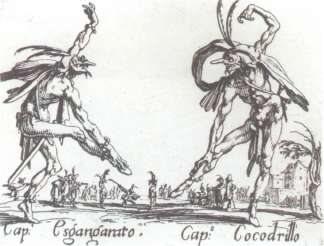 249 Офорт из серии Балли ди Сфессания горизонталями далей напоминают манеру Тинторетто, отчасти даже Эль Греко. Но в этих формах он развивал брейгелевскую тематику человеческого безумства, гуляющего по его сценкам из жизни изгоев, солдат, калек, нищих, странствующих актеров (илл. 249). Между тем как эксцентрика тиражных гравюр Калло набирала популярность, вниманием большинства художников завладели новые проблемы; разговорами о них полнились мастерские и Рима, и Антверпена, и Мадрида.