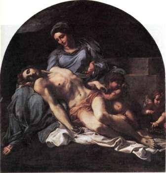 252 Холст, масло 107 х 146 см по телу Христа, высокий эмоциональный накал - характерные особенности барокко. Легко упрекнуть такую картину в сентиментальности, но следует помнить, что это - алтарный образ; перед ним горели свечи, к нему обращали свои молитвы верующие. Как бы мы ни относились к Карраччи, можно быть уверенным, что Караваджо и караваджисты ценили его невысоко. Правда, сами два живописца были в наилучших отношениях, при том, что поладить с Караваджо было не так-то просто: он обладал вспыльчивым, буйным темпераментом, в спорах легко раздражался, переходил к оскорблениям, а то и пускал в ход кинжал. В своем творчестве он шел путем, противоположным Карраччи. Караваджо не боялся безобразного (для него это было бы лишь презренной слабостью) и хотел только одного - правды в искусстве. Правды такой, как он ее видел. Ни классические образцы, ни «идеалы прекрасного» не вызывали у него почтения. Он хотел покончить со всеми условностями, творить заново, с чистого листа (стр. 30-31, илл. 15, 16). В его неуважении к традиции иные усматривали лишь намерение шокировать публику. Караваджо был одним из первых в истории художников, навлекших на себя такие обвинения, и первым, удостоившимся критического ярлыка - презрительной клички «натуралист». Но он был слишком серьезным художником, чтобы работать на сенсацию, поднимать искусственную шумиху вокруг своего имени. Пока критики спорили, он упорно работал. Смелость его искусства поражает и сейчас, почти четыре столетия спустя. Обратимся к его картине Неверие Фомы (илл. 252), где трое апостолов пристально разглядывают рану Христа, а один из них к тому же ковыряется в ней пальцем. Неудивительно, что современникам такая прямота в подходе к евангельскому сюжету казалась возмутительным оскорблением чувств верующих. Вместо привычных величавых старцев, задрапированных в тоги, перед набожным людом предстали какие-то работяги с обветренными лицами и морщинистыми лбами. Но Караваджо мог бы ответить на это, что апостолы и были пожилыми тружениками, а о скандальном жесте Фомы недвусмысленно сообщается в Евангелии: «Подай руку твою и вложи в ребра Мои; и не будь неверующим, но верующим» (Ио. 20: 27). В XIX веке и Караваджо, и Аннибале Карраччи были на время забыты. Но трудно переоценить ту роль, которую они сыграли в искусстве рубежа XVI и XVII веков. Оба работали в Риме, тогдашнем центре цивилизованного мира. Съезжавшиеся сюда со всей Европы художники включались в дискуссии о живописи, принимая ту или другую сторону, изучали старых мастеров, а затем, вернувшись на родину, разносили вести о новейших «направлениях» в искусстве. То есть в то время Рим был такой же столицей художественного мира, какою позднее стал Париж. Иностранные художники делали свой выбор между двумя соперничавшими школами в зависимости от национальных традиций, от личных пристрастий и на этой основе вырабатывали собственную живописную манеру. Рим предоставляет наилучшую точку для панорамного обзора живописи в католических странах. Среди воспитанных им мастеров едва ли не наибольшей известностью пользовался Гвидо Рени (1575 - 1642). Он прибыл из Болоньи и после недолгих колебаний примкнул к направлению Карраччи. В прошлом его престиж, как и престиж учителя, был значительно выше, чем сейчас (стр. 22, илл. 7). Его ставили в один ряд с Рафаэлем, и, взглянув на илл. 253, м