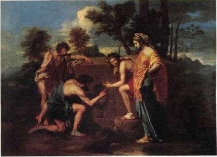 254 Холст, масло 85 X 121 см учитывать программный характер его идеалов, в соответствии с которыми он вычеркивал из натуры все, что считал низменным или уродливым, а также тот факт, что его стремление возвыситься над реальностью имело огромный успех. Аннибале Карраччи, Рени и их последователи выдвинули принципы идеализации натуры, ее «облагораживания» по классическим образцам. Мы называем такую программу академической или классицистической, в отличие от собственно классического искусства, не связанного никакими преднамеренными установками. Еще не скоро утихнут споры по поводу этой программы, но никто не станет отрицать, что среди ее приверженцев были великие мастера, которые обогатили наше сознание видениями идеального мира «чистой», незамутненной красоты. Величайшим классицистом был французский художник Никола Пуссен (1594 - 1665). Поселившись в Риме, который стал для него второй родиной, Пуссен погрузился в штудирование античной скульптуры со страстью археолога-мечтателя, надеявшегося уловить в ней отблески давно ушедших времен изначальной невинности и первозданного благородства. На илл. 254 приводится одно из лучших созданий Пуссена, своего рода заключение этих неустанных поисков. Перед нами умиротворенный омытый солнцем ландшафт. У каменного надгробия остановились трое молодых людей - судя по венкам и посохам, это пастухи -и юная женщина с благородной осанкой. Один, припав на колено,