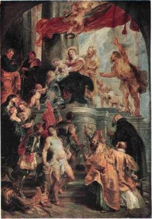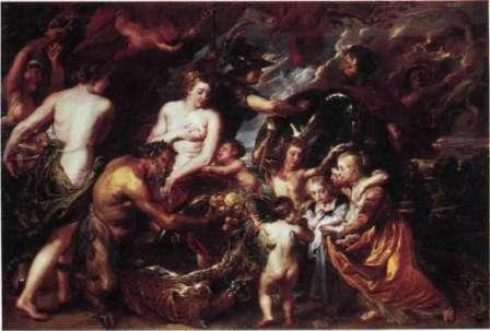 258 религиозные и социальные противоречия прорвались в страшных событиях Тридцатилетней войны на континенте и гражданской войны на Британских островах. В столкновение пришли две силы - с одной стороны, абсолютные монархии, опиравшиеся на поддержку католической церкви, а с другой - набравшая силу городская буржуазия, в основном исповедовавшая протестантство. Нидерланды разделились на протестантскую Голландию, боровшуюся с «католическим» владычеством Испании, и католическую Фландрию, со своим центром управления в Антверпене, но под протекторатом Испании. Своего особого положения Рубенс достиг в странах католического ареала. Он работал по заказам антверпенских иезуитов, правителей Фландрии, французского короля Людовика XIII и его могущественной матери Марии Медичи, испанского