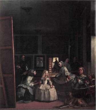 264 весьма скупа. И все же полотно Веласкеса оставляет неизгладимое впечатление своей крепкой слаженностью, полнозвучной гармонией целого. По совету Рубенса Веласкес отправился в Рим, чтобы ознакомиться с искусством великих мастеров. Он прибыл туда в 1630 году, но вскоре вернулся в Мадрид к королевскому двору, где, окруженный почетом и признанием, пребывал до конца жизни, если не считать второй недолгой отлучки в Италию. Его главной обязанностью было писать портреты короля и членов королевской фамилии. Лица этих людей были заурядны и некрасивы, но они желали видеть себя величественными и обряжались для позирования в жесткие раздутые костюмы. Трудно сыскать более неблагодарный для художника материал. Но в портретах Веласкеса, как в магическом кристалле, неказистая натура претворяется в драгоценные сгустки великолепной живописи. Увлечение манерой Караваджо отошло в прошлое, когда Веласкес познакомился с искусством Рубенса и Тициана, но при этом он выработал собственную живописную систему, в которой не было и следа вторичности. Портрет папы Иннокентия X был написан им при втором посещении Рима в 1649-1656 годах (илл. 264). Более чем сто лет его отделяют от тициановского портрета Павла III (стр. 335, илл. 214), ипри сопоставлении этих вещей выявляется торжествующая над временем преемственность в искусстве. Своим портретом Веласкес отозвался на тициановский шедевр, как ранее Тициан откликнулся на групповой портрет работы Рафаэля (стр. 322, илл. 206). В точной лепке лица Иннокентия X, в блеске шелковой накидки угадывается влияние Тициана, но перед нами живой человек, а не затверженная формула. Подлинное представление об этом шедевре можно получить только в Риме, в палаццо Дориа-Памфили. Никакая репродукция не способна передать энергию мазка в живописи зрелого Веласкеса, тонкость цветовых модуляций. Живописное начало царит и в его огромном (более трех метров высотой) полотне, получившем название Менины (фрейлины; илл. 266). Мы видим самого Веласкеса за работой над большим холстом и, приглядевшись внимательнее, обнаруживаем, что именно он пишет. В зеркале на задней стене отражаются лица королевской четы, позирующей для портрета. Всю сцену мы воспринимаем с их позиции. В мастерскую вошла их маленькая дочь, инфанта Маргарита, в сопровождении двух фрейлин; одна из них подносит Маргарите бокал с водой, другая присела в реверансе перед монаршей четой. Это реальные люди, нам известны их имена, мы знаем и о карликах, которых держали при дворе для забавы