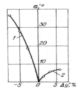 Рисунок 2.6.2. Зависимости относительной дисторсии Δy' объектива 70 ОПФ 5-1 от угла поля зрения σ' для минимального (40 мм) и максимального (240 мм) фокусных расстояний [9]. Как было отмечено в разделе 2.3, отношение фокусного расстояния к диагонали кадра определяет угол поля зрения объектива. Чем больше этот угол, тем сложнее устранять в объективе дисторсию, тем сложнее конструкция объектива и больше его стоимость. Поэтому короткофокусные (широкоугольные) объективы могут иметь большую дисторсию, чем длиннофокусные, которая иногда намеренно не устраняется для создания специальных художественных эффектов (объективы типа «рыбий глаз»).