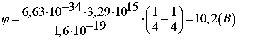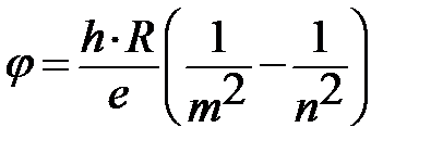 По условию задачи атом водорода переходит из состояния с главным квантовым числом n = 3 в состояние с m = 2. Подставляя числовые значения, получают: ν= 3,29∙1015∙( Ответ: ν = 4,6∙1014 с-1.