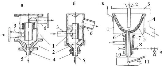 9-сурет. Гидроциклондар: а – құйынды; б – компауд-циклон; в – қысқа конусты. Құйынды циклонға ауа оның орталық бөлегіне беріледі, осыған сай аппараттың өнімділігі өседі (2,а сур.). Байытушы циклон, үш конустардан тұрады (конустың бұрыштары 1350;750;200;), оны компауд-циклон немесе «Трикон» деп атайды (2,б сур.). қысқа конусты гидроциклон түйіршікті заттарды гравитациялық әдіспен байытуда қолданылады (2,в сур.). Өндірісті жиі қолданылатын гидроциклондардың диаметрлері 350; 500; 750; 1000 мм құрайды. Олардың бастапқы зат бойынша өнімділігі 0,5-тен 1500 м3 / сағ. дейін өзгереді. Әдебиет: 1-нег. [110-129] Бақылау сурақтары: 1. Ортадан тепкіш сұрыптағыштардың түрлері? 2. Гидроциклонның суретін салу. 3. Сұрыптау процесі гидроциклонда қалай атқарылады? 4. Гидроциклондағы қысым мөлшері қандай дәрежеде болады? 5. Гидроциклондардың диаметрлері қандай болады? Date: 2015-05-18; view: 1565; Нарушение авторских прав |