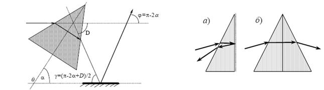 В спектральных приборах используется нормальная дисперсия, когда показатель преломления уменьшается с ростом длины волны λ. Диспергирующим элементом призменных спектральных приборов является одна или несколько призм. В результате преломления света на гранях призмы происходит отклонение луча света на некоторый угол θ от первоначального направления. Угол отклонения зависит от показателя преломления вещества призмы и поэтому является функцией длины волны, т.е.