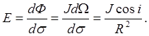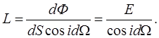 Другими словами, яркость потока пропорциональна той освещенности Е, которую он создает на перпендикулярной к нему поверхности, и обратно пропорциональна телесному углу dW, который он заполняет. Очевидно, что яркость потока равна по величине яркости соответствующего источника.