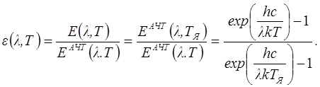 Строго говоря, эта формула непосредственно применима для определения только температуры АЧТ. Для других тел по этой формуле определяется радиационная температура Тр. При этом пирометром регистрируется энергетическая светимость Е(Т) исследуемого тела. Истинная температура тела находится с использованием коэффициента пропорциональности e(T) между энергетическими светимостями исследуемого тела и АЧТ.