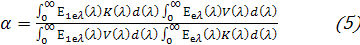где Јα- сила света источника по направлению к освещаемой поверхности(кд); l - расстояние от источника(м); i - угол между направлением силы света и нормалью к освещаемой поверхности. Если известна функция спектральной плотности потока облучения e(λ) то освещенность определяется следующим выражением: