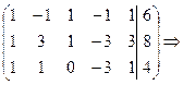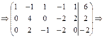 Выполним прямой ход метода Гаусса. Умножим первую строку на (−1) и прибавим ко второй и третьей строке. Получим