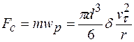 Твердые частицы, находящиеся в этом потоке движутся с тангенциальной составляющей скорости vt и радиальной составляющей vr. Криволинейное движение частицы вызывает появление центростремительного ускорения Таким образом, на частицу, объем которой V и масса m действуют силы: - выталкивающая сила, вызванная градиентом давления жидкости - центробежная сила, вызванная центростремительным ускорением - сила Кориолиса, вызванная радиальным перемещением вращающейся частицы Уравнение движения частицы в радиальном направлении имеет вид: