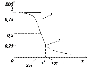 Рис.5.2. Сепарационная характеристика: 1- идеальная; 2- реальная