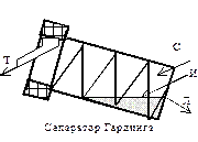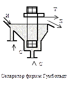 Разгрузка легкой фракции осуществляется. Как правило, переливом суспензии через сливной порог сепаратора. Тяжелая фракция разгружается при помощи аэролифта, сифоном или различными механическими приспособлениями (ковшовыми или колесными элеваторами, шнеком). По режиму сепарации сепараторы подразделяются на прямоточные (разгрузка продуктов осуществляется в одном направлении) и противоточные (разгрузка продуктов осуществляется в противоположных направлениях). Прямоточные сепараторы позволяют найти наиболее экономичные конструктивно-компоновочные решения при делении обогащаемого полезного ископаемого на два продукта. При делении на три продукта применение противоточных сепараторов является более предпочтительным. Сепарационная характеристика в практике обогащения полезных ископаемых описывается с помощью интеграла вероятности Гаусса. Т.е.