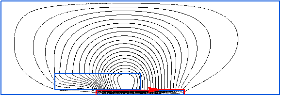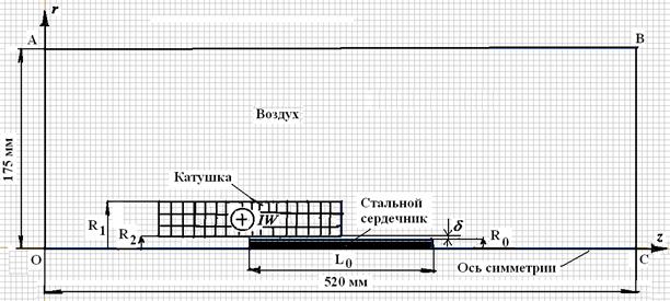 Граничные условия: на внешних границах расчетной области на оси симметрии по молчанию в модели ELCUT функция магнитного потока всегда принимает значение