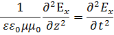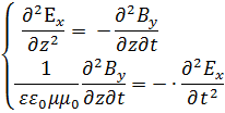Электрическое поле, порождаемое меняющимся магнитным полем, подчиняется волновому уравнению! Это означает, что возникшее электрическое поле подчиняется законам распространения волн. Нетрудно видеть, что если продифференцировать первое уравнение (1.1) по времени t, второе уравнение (2.1) - по координате z, получим уравнение