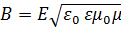 Интенсивность волны I – это средняя за период плотность потока энергии. Поскольку среднее за период значение квадрата косинуса равно ½, то для интенсивности электромагнитной волны можно записать: