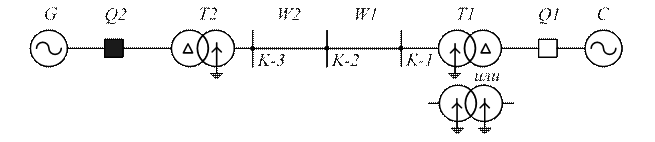 Рис. 3. Однолинейная схема исследуемой электрической сети с односторонним питанием от эквивалентной системы С
