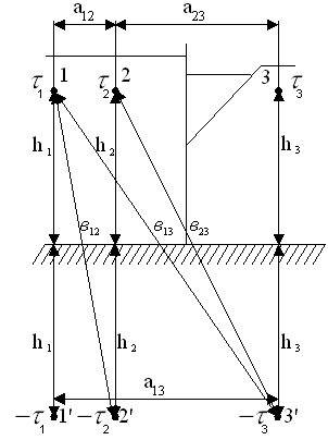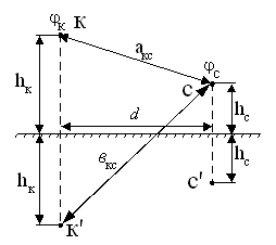 В качестве влияющего провода возьмем одиночный контактный провод К. Заданы: потенциал контактного провода j к, радиусы проводов, расстояния между проводами, расчетная схема, представленная на рис. 5.5.