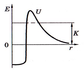 Преодоление α -частицей потенциального барьера в данных условиях происходит благодаря туннельному эффекту. Квантовая теория, учитывая волновые свойства α -частицы, «позволяет» ей с определённой вероятностью проникать сквозь такой барьер