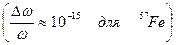 то есть энергия этого γ-кванта меньше энергии, необходимой для перевода такого же ядра из нормального состояния в возбуждённое, и резонансное поглощение γ-квантов ядрами обычно не наблюдается. Мёссбауэр открыл, что в некоторых кристаллах можно создать такие условия, при которых импульс отдачи при излучении γ-кванта сообщается не отдельному ядру, а всему кристаллу в целом. При этом изменение кинетической энергии кристалла из-за большой его массы (по сравнению с массой одного ядра) приближается к нулю, а энергия излучения γ-кванта оказывается почти в точности равной энергии перехода (Е 1 – Е0). При пропускании пучка таких γ-квантов через образец, содержащий атомные ядра того же изотопа, наблюдается резонансное поглощение. Замечательной особенностью эффекта Мёссбауэра является необычайно малая ширина спектральной линии поглощения
