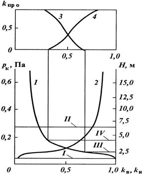 На рис. 15 показано изменение по разрезу нефтеводонасыщенности и капиллярного давления в реальном терригенном коллекторе с высокими фильтрационно-емкостными свойствами (по данным исследования керна одного из месторождений Татарии). Из рисунка видно, что при капиллярном давлении, равном нулю, пористая среда полностью водонасыщена, т.е. коэффициент водонасыщенности k = 1. Несколько выше нулевого уровня капиллярного давления четко выделяется уровень I, на котором в пористой среде появляется нефть (кривая 2). Выше уровня коэффициент нефтенасыщенности kн возрастает вначале весьма интенсивно, затем все медленнее, пока не достигает значений, близких к предельному (0,86). Соответственно kв выше уровня I уменьшается вначале быстро (кривая В1), затем медленнее, до значений, близких к минимальным (0,14). По значениям k H, близким к максимальным, а k — близким к минимальным, с некоторой долей условности проводится уровень II. Уровень I соответствует подошве переходной зоны, а уровень II — ее кровле.