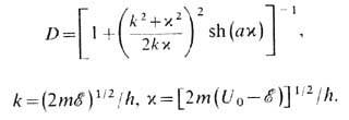 на всём протяжении барьера, за исключением непосредств. окрестностей точек поворота x 1,2 коэф. D 0 слабо отличается от единицы. Существ. отличие D 0 от единицы может быть, напр., в тех случаях, когда кривая потенц. энергии с одной из сторон барьера идёт настолько круто, что квазиклассич. приближение там неприменимо, или когда энергия близка к высоте барьера (т. е. выражение, стоящее в экспоненте, мало). Для прямоугольного барьера высотой U о и шириной а коэф. прозрачности определяется ф-лой Основание барьера соответствует нулевой энергии. В квазиклассич. случае D мал по сравнению с единицей. Др. постановка задачи о прохождении частицы через барьер состоит в следующем. Пусть частица в нач. момент времени находится в состоянии, близком к т. н. стационарному состоянию, к-рое получилось бы при непроницаемом барьере (напр., при барьере, приподнятом вдали от потенциальной ямы на высоту, большую энергии вылетающей частицы). Такое состояние наз. квазистационарным. Аналогично стационарным состояниям зависимость волновой ф-ции частицы от времени даётся в этом случае множителем