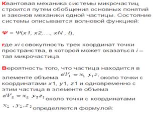 Исто́рия информацио́нных техноло́гий берёт свое начало задолго до возникновения современной дисциплины информатика, появившейся в 20-м веке. Информационные технологии (ИТ) связаны с изучением методов и средств сбора, обработки и передачи данных с целью получения информации нового качества о состоянии объекта, процесса или явления. Ввиду возрастания потребностей человечества в обработке всё большего объёма данных, средства получения информации совершенствовались от самых ранних механических изобретений до современных компьютеров. Также в рамках информационных технологий идёт развитие сопутствующих математических теорий, которые сейчас формируют современные концепции. Информационные технологии активизируют и эффективно используют информационные ресурсы общества (научные знания, открытия, изобретения, технологии, передовой опыт), что позволяет получить существенную экономию других видов ресурсов – сырья, энергии, полезных ископаемых, материалов и оборудования, людских ресурсов, социального времени. К настоящему времени ИТ прошли несколько эволюционных этапов, смена которых определяется главным образом развитием научно-технического прогресса, появлением новых технических средств переработки информации. Основным техническим средством технологии переработки информации является персональный компьютер, который существенно повлиял как на концепцию построения и использования технологических процессов, так и на качество информации, получаемой после обработки. Тенденции развития современных информационных технологий приводят к постоянному возрастанию сложности информационных систем (ИС). Современные крупные проекты ИС характеризуются, как правило, следующими особенностями: - сложность описания (достаточно большое количество функций, процессов, элементов данных и сложные взаимосвязи между ними), требующая тщательного моделирования и анализа данных и процессов; -наличие совокупности тесно взаимодействующих компонентов (подсистем), имеющих свои локальные задачи и цели функционирования (например, традиционных приложений, связанных с обработкой транзакций и решением регламентных задач, и приложений аналитической обработки (поддержки принятия решений), использующих нерегламентированные запросы к данным большого объема); -отсутствие прямых аналогов, ограничивающее возможность использования каких-либо типовых проектных решений и прикладных систем; -необходимость интеграции существующих и вновь разрабатываемых приложений; -функционирование в неоднородной среде на нескольких аппаратных платформах; -разобщенность и разнородность отдельных групп разработчиков по уровню квалификации и сложившимся традициям использования тех или иных инструментальных средств; -существенная временная протяженность проекта, обусловленная, с одной стороны, ограниченными возможностями коллектива разработчиков, и, с другой стороны, масштабами организации-заказчика и различной степенью готовности отдельных ее подразделений к внедрению ИС. Постулат состояния в квантовой теории. Классическое описание состояния системы. Принцип неопределенности Гейзенберга. Способ обозначения состояния в квантовой теории. Представление состояния. Волновая функция. Волновая функция системы частиц. Стандартные условия, накладывае