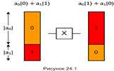 В дальнейшем нам предстоит рисовать квантовые вычислительные схемы. Они по виду будут аналогичны классическим схемам. В частности, однокубитные операции будем изображать в виде прямоугольников с символом операции внутри. Как показано на том же рисунке 24.1.