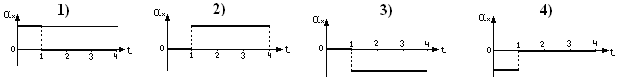 Ниже приведены четыре различных графика зависимости проекции ускорения от времени. Какой из этих графиков соответствует приведенной зависимости проекции ускорения от времени?