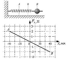 21.3. Шарик, прикрепленный к пружине и насаженный на горизонтальную направляющую, совершает гармонические колебания. На графике представлена зависимость проекции силы упругости пружины Fx на положительное направление оси Х от координаты шарика. Найти работу силы упругости на участке 0 – В – 0.
