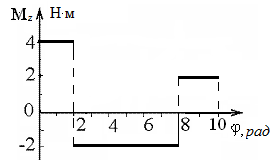 28.7. На рисунке представлен график зависимости проекции вращательного момента силы, действующей на тело, от угла поворота. Чему равна работа сил, действующих на тело, при повороте его на угол 10 рад?