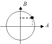 Это простое дифференциальное уравнение с разделяющимися переменными легко интегрируется. Оно имеет два частных решения: y+(х) = A × е i kx и y– (х) = B × e–i kx Общее решение является суммой частных: y(х) = A × е i (kx) + B × e– i (kx) причем должно выполняться условие нормировки А 2 + В 2 = 1. Полный набор этих состояний можно изобразить посредством плоскости с координатными осями А и В: