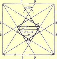 Построение канонического типа изображения Среди разнообразных компонентов К. д. особая роль принадлежит пропорциональным соотношениям, которые составили математическую и одновременно символическую его основу. К. д. опирался на восемь пропорциональных величин, полученных из геометрических построений после деления сторон исходного квадрата в отношении золотого сечения. Пересечение диагоналей, проведенных в точки деления сторон в пропорции золотого сечения (J3), образует два малых квадрата. Искомые восемь пропорциональных величин составляют отрезки между вершинами и точками пересечения сторон малых квадратов. Это (в порядке возрастания) величины R, J, E, N, к, S, С, А. При этом треугольники, образованные диагоналями. большого квадрата, геометрически подобны граням пирамид в Гизе. Для канонических типов статуй и рельефов максимальный размер фигуры соответствует стороне большого квадрата. Местоположение отдельных элементов фигуры —- уровень носа, рта, шеи, плеч, пояса и т. д. — определяется восемью последовательно возрастающими величинами, отмеряемыми от верхнего предела. Благодаря мастерскому применению системы пропорций, в одном и том же изображении могли органично сочетаться элементы человеческой фигуры и тела животного (примером может служить Большой Сфинкс в комплексе фараона Хефрена в Гизе). Не менее важен и канонический тип передачи фигуры на плоскости. Голова и ноги фигуры изображаются в профильном повороте, а плечи — в повороте в фас. Впервые этот прием появился росписях египетской неолитической керамики, я впоследствии путь длительного развития и соединившись с принципом пропорций. Именно за тончайшего расчета пропорций и достигалась i стилизованность и вместе с тем жизненная убедительность таких изображений. К числу канонизированных приемов в скульптуре относится и правило ставить статую, изображающую человека, во фронтальный разворот, с выдвинутой вперед левой ногой. По этим же соображениям, требующим одновременно полной устойчивости фигуры, обобщенности ее художественного решения и пластической точности в передаче сюжета, многочисленные египетские фигуры сидящих писцов заключены в воображаемый треугольный контур. В число канонических входит принцип фризообраз-ного построения рельефных композиций, которые разворачиваются в виде повествовательных поясов-регистров, как в изображениях эпохи Раннего царства, даже тогда, когда в художественном арсенале египетских мастеров обнаруживается множество вполне реалистических приемов. Многие из принципов К. д. находятся на границе собственно художественных правил и требований ритуально-мифологического порядка. Таково большинство приемов, используемых в изображении глаз. Строгое требование создавать «зрячее око» посмертной статуе фараона надолго определило характер декоративной росписи, которой покрывались скульптурные изображения, и выразительных приемов сочетания разных материалов. В пределах строго предписанного канона у древнеегипетских мастеров имелось не так уж много возможностей для создания индивидуально-неповторимых лиц и фигур. Тем не менее при высокой степени обобщенности древнеегипетских художественных произведений индивидуальное начало вносится в каждое изображение, для чего используются самые разнообразные вспомогательные 