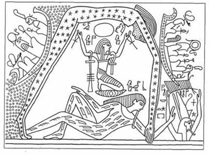 Боги Нут, Шу и Геб. Шу отделяет небо от земли.