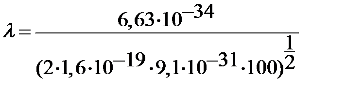 Задача 5.1. Рассчитать длину волны де Бройля для электрона, прошедшего ускоряющее поле с разностью потенциалов 100 В.