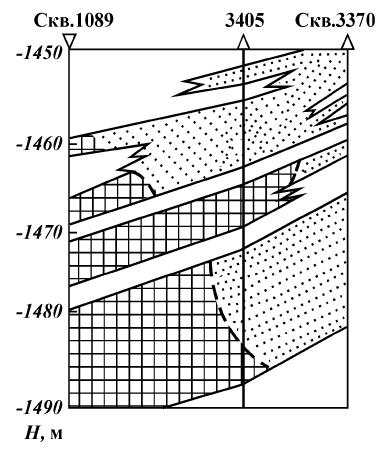 Рис. 107. Схематический геологический профиль по пласту С-1 Мухановского месторождения (