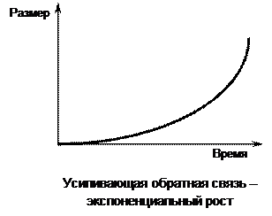 Существуют два основных вида обратной связи: 1. Усиливающая обратная связь — когда изменения в системе в целом приводят к усилению первоначального изменения. Другими словами, изменение проходит через систему, производя еще большее изменение в том же самом направлении. 2. Уравновешивающая обратная связь — когда изменения в системе в целом приводят к ослаблению первоначального изменения. Все системы, какими бы сложными они ни были, построены на замкнутых циклах обратной связи только этих двух видов. Рассмотрим сначала усиливающую обратную связь. Ее часто не совсем точно называют «положительной», но это название не соответствует сущности такого типа связи, потому что, во-первых, его можно спутать с чем-то вроде похвалы, а во-вторых, оно создает впечатление, что связь такого рода хороша сама по себе, тогда как в действительности она может быть в самом деле полезной, а может оказаться сущим злом, если благодаря ей вся система неизбежно выходит из-под контроля: все зависит от того, что именно усиливается. Поэтому, чтобы избежать путаницы, мы и будем называть связь такого рода «усиливающей». Усиливающая обратная связь подталкивает систему в том самом направлении, в котором она уже движется. В зависимости от начальных условий она может привести как к росту активности системы, так и к ее падению. В данном случае частью цикла усиливающей обратной связи является то или иное «вознаграждение», если эффект направлен на усиление того же самого поведения. Вознаграждением могут служить продвижение по службе, материальная выгода, моральное поощрение, подчеркнутое внимание или просто улыбка. Ваши действия, полученное за них вознаграждение и возобновленные действия составляют замкнутый цикл усиливающей обратной связи. Само же по себе вознаграждение не является усиливающей обратной связью, если только оно не ведет к усилению того же самого первоначального поведения. Представьте себе снежный ком, скатывающийся с горы. По пути он собирает прилипающий к нему снег, и чем больше он становится, тем больше снега к нему прилипает, пока это движение не превращается в снежную лавину. Вам никогда не приходило в голову, что и ваш банковский счет — не что иное, как система? В нем проявляется усиливающая обратная связь. Представьте себе, что у вас на счету хранится 1000 $ под 10% годовых. За первый год такой капитал даст 100 $ прибыли и в целом составит 1100 $. За второй год эта сумма принесет 10% — 110 $, — которые в сумме с предыдущим капиталом составят уже 1210 $. В следующем году прибыль еще возрастет. И чем больше будет возрастать сумма, тем большую прибыль она будет приносить, сама в свою очередь становясь все больше. Продолжая такие расчеты, легко обнаружить, что уже через семь лет вы удвоите свои сбережения и на вашем счету будет лежать сумма в 2000 $. И каждые следующие семь лет она будет удваиваться. Капитал в 1000 $, положенный на ваш счет в момент вашего рождения, к тому времени, когда вам исполнится двадцать один год, будет равняться 8000 $. Предоставленная самой себе усиливающая обратная связь ведет к так называемому экспоненциальному росту, суть которого в том, что скорость роста пропорциональна уже полученной величине, а период удвоения остается величиной постоянной. Такой процесс может начинаться сколь угодно медленно и незаметно, но, предоставленный самому себе, он 