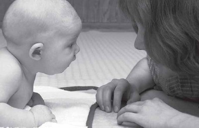 PEKiP Разговаривайте с ребенком, лежа на животе Лягте на пол, причем так, чтобы вы с ребенком могли смотреть друг на друга. Начните разговор. Он поднимет голову, чтобы увидеть вас, и, может быть, постарается держать ее подольше. Ребенок на фотографии смотрит на маму очень внимательно. Если вы будете часто разговаривать с ним, расположившись рядом на одеяле или на ковре, это разбудит его активность, он сумеет, найдя опору, удержать голову – ведь ему хочется видеть маму, папу, а также всё интересное, что будут ему показывать, поместив перед ним. Со временем ребенку будет всё легче подолгу держать голову приподнятой. И однажды ему самому понравится лежать на животе – ведь так он может разглядывать всю комнату. Попробуйте как-нибудь сами полежать на полу на спине и на животе; тогда вы поймете, что, лежа на животе, вы намного активнее и видите гораздо больше, чем лежа на спине. Возможно, вы побаиваетесь класть ребенка на живот, так как слышали, что у детишек в этом положении скорее могут возникнуть затруднения с дыханием, нежели в положении на спине. Но проблема с дыханием может появиться в том случае, если младенец спит на животе. Если же он просто лежит или играет – никаких проблем не должно быть. Если ребенок лежит на животе, можно погладить его всей рукой, слегка нажимая ладонью, начиная с затылка и вдоль всей спины. Это полезно и приятно ребенку, к тому же поглаживание подбодрит его и укрепит в нем старание держать голову.