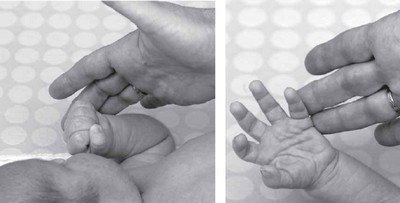 PCKiP Младенец раскрывает ладонь при поглаживании