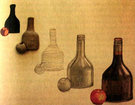 Первое, что приходит на ум, – это зеркало, правда? Задание 1 Найти произведение искусства, в котором есть зеркало. Их много, но я хочу, чтобы каждый из вас нашел что‑то свое, то, с чем ему будет интересно работать. Сделать набросок и трансформировать картину в живопись, или в коллаж, или в скульптуру. Задание 2 Отражение предмета в воде. Найти произведение искусства на эту тему. Сделать рисунок акварелью или пастелью. Это для разминки. Самое интересное – это отражения в лужах. Если луж поблизости нет, воспользуйтесь ванной с водой. Если и ванны нет – налейте воду в таз, поставьте его туда, где не дует, положите в воду любой деревянный предмет. Задание 3 Отражение предметов друг в друге. Посмотрите, что делали художники на эту тему. Кубисты, к примеру. Мы уже столкнулись с этим явлением в натюрморте Фридл. Создайте такую композицию, в которой отражаемые предметы выглядят утрированно (не обязательно прозрачные предметы; вспомните, как мы смотрелись в никелированные чайники, скажем, и смеялись над искажением своей физиономии), попробуйте даже усилить искажение. Материал – по вашему выбору.