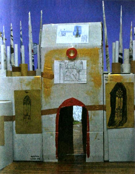Архитектор Кьяра взяла себе в помощники дизайнеров – Маню и Луку. Они доставили в класс все материалы и дали нам задание на то время, пока сами будут возводить стены, – скручивать газеты и засовывать их одной стороной в полые картонные трубки. Это будут верхушки собора. Большие белые коробки поставлены на попа, скреплены скотчем. Лука вырезал ножом главный вход, чтобы было ясно, где зад, а где перед. Прикреплять трубки с газетами к стенам нужно вдвоем. Один придерживает, другой обхватывает скотчем. Мы работаем в паре с девушкой, которая боится перспективы. Между прочим, я тоже паникерша и тоже не в ладу с перспективой, но в моменты паники не спасаюсь рисованием. Даже если бы Эдит Крамер дала мне такой совет, я, наверно, ему бы не последовала. Сказать об этом? Сказать‑то я могу, но тогда надо бежать за Клаудией. «Ла Скала» продвигается. В театр можно заглянуть и увидеть сцену. Выставка начинает обретать форму. Рядом с цветными ярлычками с именами художников – интерпретации картин. Все наброски собора сложены в сторону, ими мы будем оформлять его стены. Дорожки цветистого парка подметает скульптура дворника. На фасаде собора стоят две золотые скульптуры из фольги – Маниных рук дело.