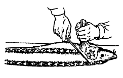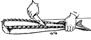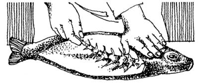 Рис. 8. Пластування риби: а — від голови до хвоста; б — від хвоста до голови.