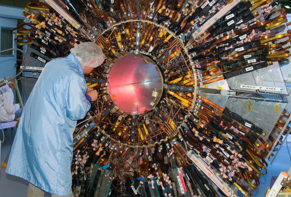Компактный мюонный соленоид — один из двух больших универсальных детекторов элементарных частиц, созданных в Европейском центре ядерных исследований и предназначенный для исследования свойств микромира. Он расположен в подземной пещере внушительных размеров: 53 метров в длину, 27 метров в ширину и 24 метров в высоту. (Фото Maximilien Brice | © 2012 CERN):
