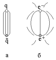 Сравнение конфигураций силовых линий в сильном и электромагнитном взаимодействиях представлено на рис. 14. Из-за сильного глюон-глюонного взаимодействия цветовое поле q