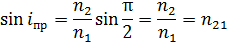 При углах падения Это явление называется полным внутренним отражением света. Предельный угол определяется соотношением:
