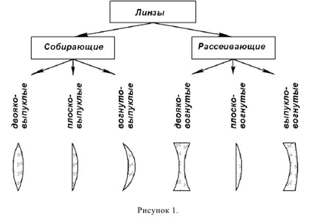 Линзы. Линзой называется прозрачное тело, ограниченное с двух сторон криволинейной поверхностью. (В частном случае одна из поверхностей может быть плоской). По внешней форме линзы делятся на: