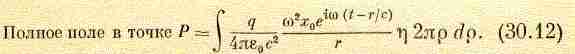 (30.17) Точно такой же результат мы получили бы из (30.16), положив e-i¥=0. (Есть еще одна причина, почему вклад в интеграл от больших значений r стремится к нулю,— это опущенный нами множитель, учитывающий проекцию ускорения на плоскость, перпендикулярную линии PQ.)