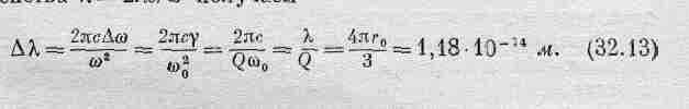 (32.10) (Для большей ясности и из соображений близости к исторически принятой форме мы ввели величину е2 = q2e/4pe0 и записали 2p/l вместо w0/с.) Поскольку величина Q безразмерна, множитель е2/mес2, зависящий только от массы и заряда электрона и выражающий его внутренние свойства, обязан иметь размерность длины. Он был назван классическим радиусом электрона, потому что в старых моделях электрона радиационное сопротивление пытались объяснить действием одной части электрона на другие его части, для чего размеры электрона приходилось выбирать порядка e2/mec2. Но эта величина потеряла свой прежний смысл, и никто теперь не считает, что электрон имеет такой