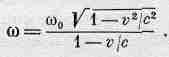 Будет ли наблюдаться частота w= w0/(1-v/c), если атом с собственной частотой ш0 движется со скоростью v к наблюдателю? Нет. Нам хорошо известно, что собственная частота движущегося атома w1 и частота покоящегося атома w0 — не одно и то же из-за релятивистского замедления хода времени. Так что если w0 — собственная частота покоящегося атома, то частота движущегося атома будет равна